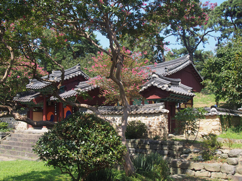 거기서 30여분을 달려 도착한 곳이 나주목 관아(금성관). 아직도 발굴과 복원이 진행되고 있었지만, 목사골 나주의 위용과 분위기는 당시의 모습인 듯 고풍스러웠다. 그로부터 멀지 않은 동강면 인동리 성지마을이 바로 선생의 탄생지였으나, 시간 상 돌아올 때 들르기로 했다. 선생을 배향한 강진의 강덕사(康德祠, 강진군 향토문화유산 14호/군동면 라천리 1044)에서 ‘탐진 최씨 청년 화수회’ 최윤영 회장이 우리를 기다리고 있기 때문이었다. 1966년 창건된 강덕사에는 고려 인종(1122-1146) 때 왕을 호종하여 이자겸의 난을 좌절시키고 나라를 보존시킨 어의 최사전을 주벽으로, 선생과 함께 최표ㆍ최극충 선생 등을 배향하고 있었다.