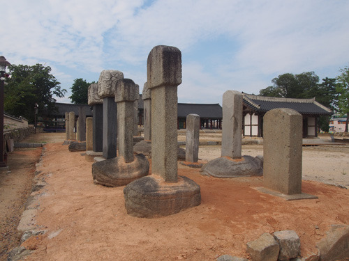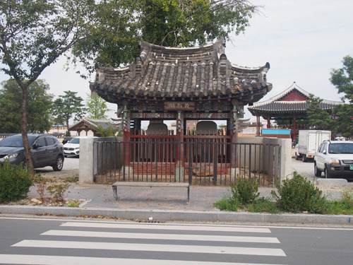 나주목 금성관의 외삼문과 내삼문 중간쯤 우측 성벽 옆의 각종 송덕비들