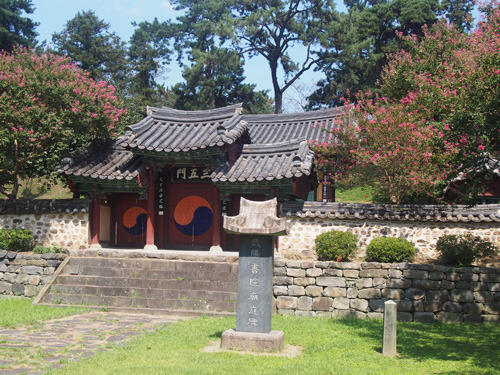 9월 3일 토요일. 추석맞이 벌초 행렬로 고속도로는 만원이었고, 들판의 벼는 누렇게 익는 중이었다. 답사 참가자 12명을 태운 버스가 1차로 선 곳은 광주 광산구의 무양서원(武陽書院). 고려 인종 때의 어의(御醫) 최사전(崔思全)을 주벽으로, 후손인 선생을 비롯하여 최윤덕(崔允德)ㆍ유희춘(柳希春)ㆍ나덕헌(羅德憲) 등이 배향되어 있었다. 탐진 최씨 문중이 전국 유림들의 호응을 얻어 1927년 건립, 매년 음력 9월 6일에 제향을 올리는 곳이었다. 유생들이 공부하던 이택당(以澤堂) 좌우로 합의문(合義門)과 합인문(合仁門)이, 문을 열고 들어가자 그 안쪽에 낙호재(樂乎齋)와 성지재(誠之齋)가 좌우로 서 있었으며, 몇 계단 위에 무양사(武陽祠)가 높직이 앉아 있었다. 90년 세월의 흔적이 느껴지지 않을 만큼 서원 전체가 단정했다.