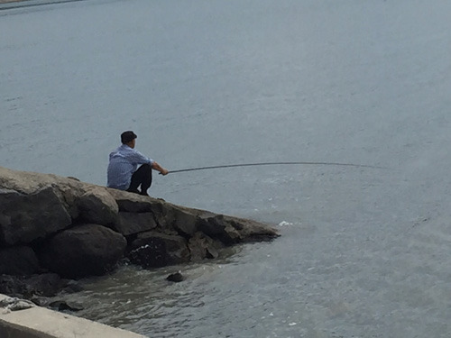 포구의 한켠에서 낚싯대를 드리운 강태공