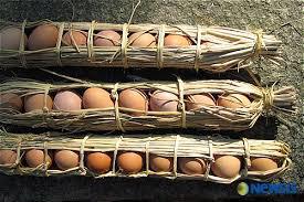 밖에서 이슬에 젖어 꼼지락대는 벌레도 쪼아 먹고, 배추밭에 잠입하여 싱싱한 야채도 먹고, 익어가는 벼 알도 슬쩍슬쩍 훔쳐 먹는 게 그들의 오전 일과이고, 점심 무렵부터 오후 2~3시까지는 각자가 찜해 놓은 장소에서 알을 낳곤 했다. 학교에서 돌아와 점심을 먹고 나면 으레 바가지를 들고 집 주변 풀밭이나 짚 누리를 헤집고 다니며 달걀들을 수거해야 했다. 하루 수확물이 몇 개 안될 경우는 그냥 쌀독에 묻어두기도 하지만, 꽤 많은 날엔 왕겨를 담아놓은 섬에 차곡차곡 넣어 두었다.
