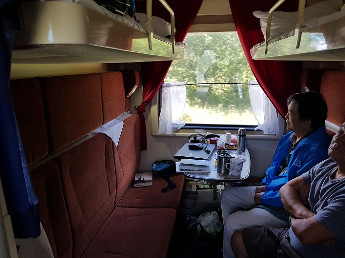 사람들의 아우성 속에 드높은 승차대를 올라서니 날씬한 아가씨 하나 조심조심 지날만한 통로가 몹시 비좁아 놀라웠고, 가까스로 찾아 들어간 4인용 객실의 협소함은 더욱 놀라웠다. 땀과 비에 흠뻑 젖은 옷이 온몸에 달라붙은 것도 모르고 가까스로 침대에 엉덩이를 붙이니, ‘뺑~!’ 소리를 내며 열차가 움직였다. 출발 뒤 30분이나 지나야 에어컨이 가동된다는 말에 땀은 더 흘렀다.